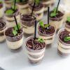 Mini töltött tartlettek különböző formában (kör, négyzet, téglalap).