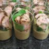 A fogást adagonként elegáns kis tálkákban tálalva szállítjuk.